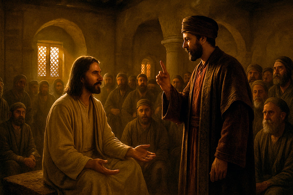 Кніжнік, які задае гэтае пытанне, быў чалавекам вучоным і пабожным. Але Евангеліст падкрэслівае: ён «выпрабоўваў» Езуса. Ён хоча не толькі ведаць, але і праверыць. Магчыма, у ягоных словах крыецца гонар, жаданне пераканацца, што гэты Галілейскі Настаўнік сапраўды варты ўвагі. А Езус, як заўсёды, не трапляе ў пастку. Ён адказвае не адказам, а пытаннем: